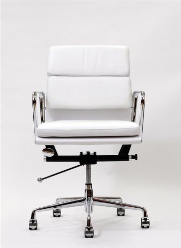 CHECK LOWEST PRICES Domino Mid-back Office Chair in White Leather and Aluminum Base